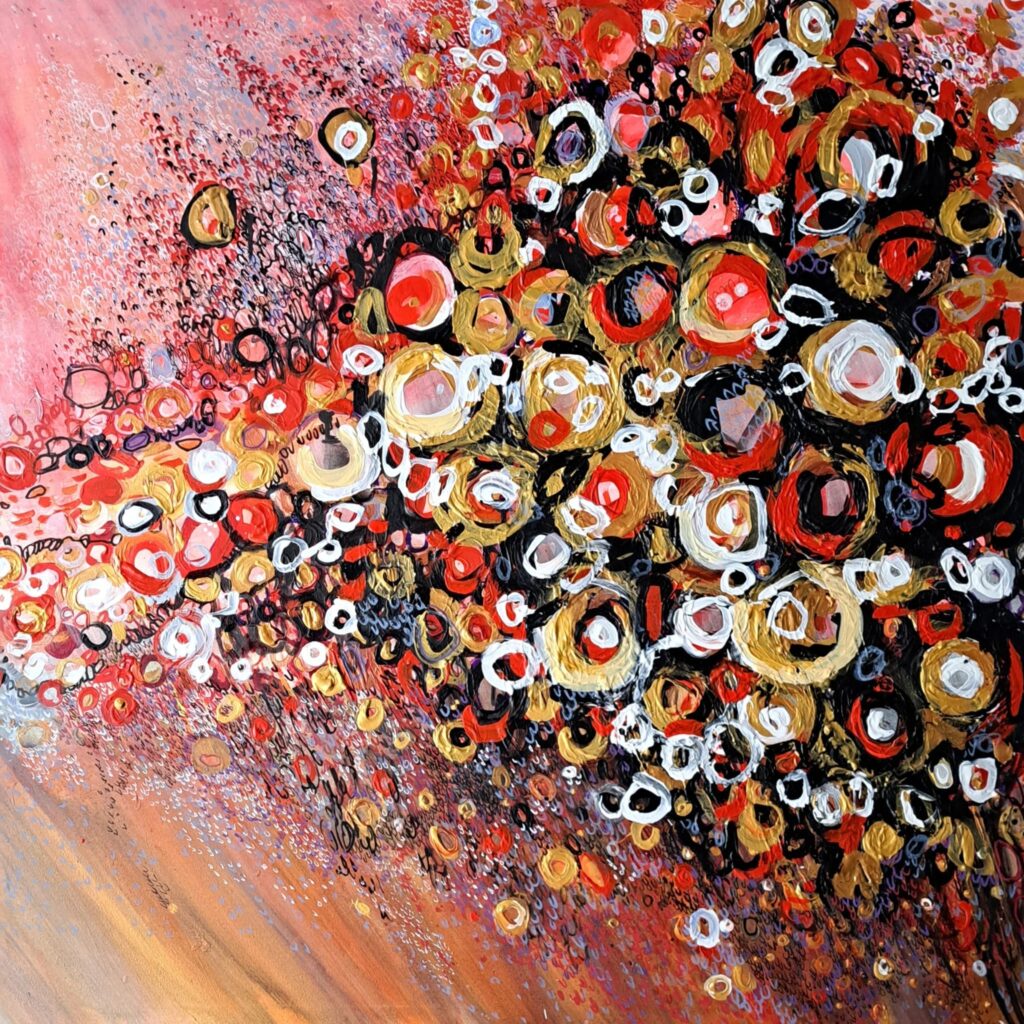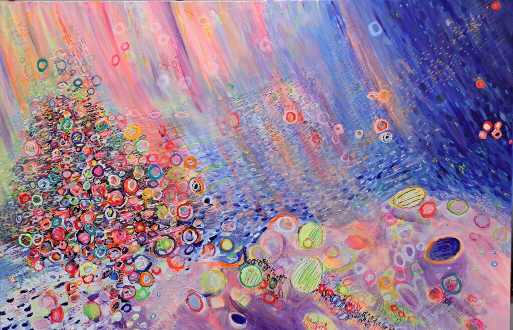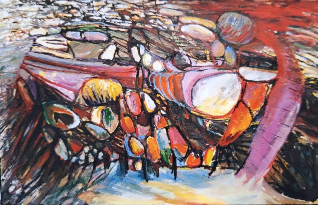 Het werk, vaak kleurrijk laat zich definiëren als organisch abstract.